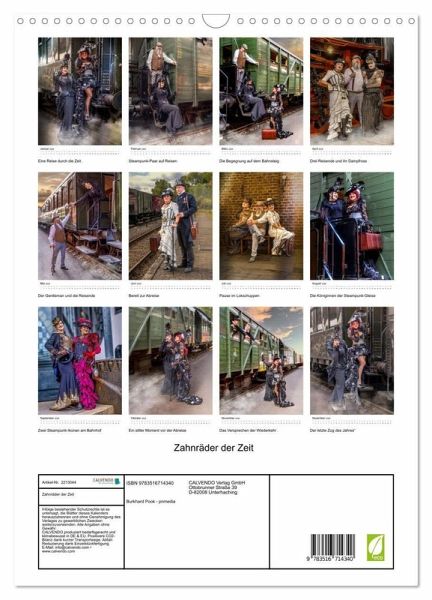 Dieser Premium-Kalender präsentiert eine exquisite Auswahl an Fotografien, die die hohe Kunst des Steampunk-Stylings feiern. Von eleganten Korsetts und Rüschen bis hin zu Monokeln und Zylinderhüten - jedes Bild ist ein Meisterwerk der viktorianisch inspirierten Mode mit einem fantastischen, mechanischen Twist.