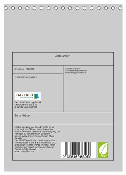 QUALITÄT - Hochwertiger Fotokalender mit 12 wunderschönen Motiven auf lichtbeständigem Bilderdruckpapier, robuste Spiralbindung.NACHHALTIG - deutliche Abfallreduzierung durch bedarfsgerechte Einzelstückfertigung, umweltfreundliches FSC-zertifiziertes Papier, Produktion in Deutschland, klimabewusste Logistik.PERFEKTES GESCHENK - Kalender für Freunde und Familie, für Kinder und Erwachsene, jung und alt, zu Weihnachten, Geburtstag oder zwischendurch.VIELFALT - Bildkalender in verschiedenen Formaten, z.B. DIN A5, DIN A4, DIN A3 sowie DIN A2. Ob Naturmotiv, Gemälde oder Fotos, ideal für ein persönliches Wohlfühlambiente.Sanfte Gräser, sanftes Leben von Autor(in): Beatrice Biewer