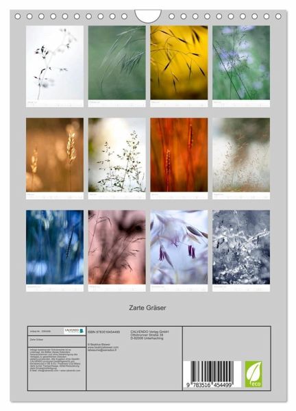 QUALITÄT -Hochwertiger Fotokalender mit 12 wunderschönen Motiven auf lichtbeständigem Bilderdruckpapier, robuste Spiralbindung mit Aufhängebügel.NACHHALTIG - deutliche Abfallreduzierung durch bedarfsgerechte Einzelstückfertigung, umweltfreundliches FSC-zertifiziertes Papier, Produktion in Deutschland, klimabewusste Logistik.PERFEKTES GESCHENK - Kalender für Freunde und Familie, für Kinder und Erwachsene, jung und alt, zu Weihnachten, Geburtstag oder zwischendurch.VIELFALT - Bildkalender in verschiedenen Formaten, z.B. DIN A5, DIN A4, DIN A3 sowie DIN A2. Ob Naturmotiv, Gemälde oder Fotos, ideal für ein persönliches Wohlfühlambiente.Sanfte Gräser, sanftes Leben von Autor(in): Beatrice Biewer