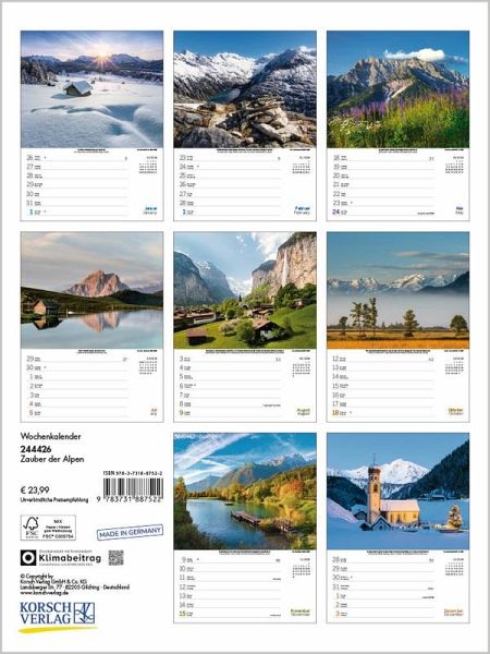 Genießen Sie 53 spektakuläre Aufnahmen der schönsten Bergpanoramen, Seen und Landschaften in den faszinierenden europäischen Alpen. Klimaneutral hergestellt auf nachhaltig produziertem Papier.