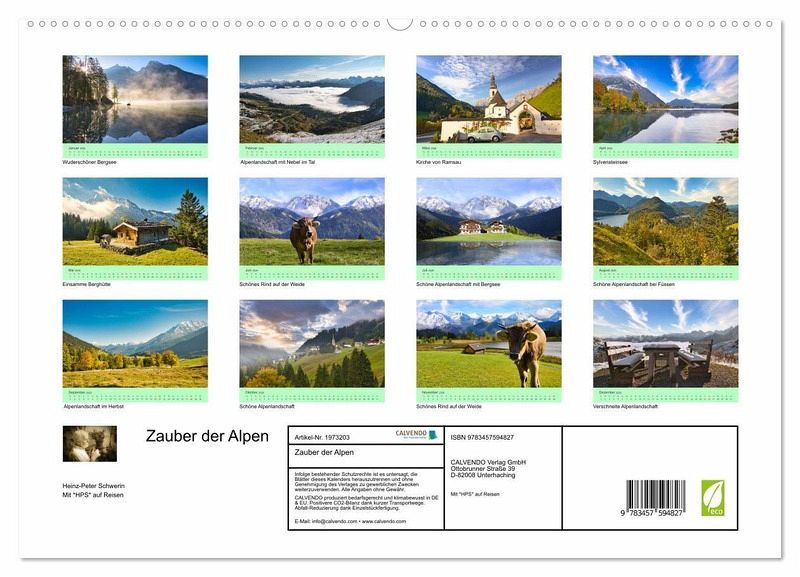 PREMIUM-LINIE - Brillanter Fotokalender mit 12 wunderschönen Motiven, Kunstdruck in Hochglanz in Museumsqualität.QUALITÄT - edle Materialien, stabile Rückwand mit 2 innovativen Einstecktaschen für eine optimale Präsentation an der Wand.NACHHALTIG - deutliche Abfallreduzierung durch bedarfsgerechte Einzelstückfertigung, umweltfreundliches FSC-zertifiziertes Papier, Produktion in Deutschland, klimabewusste Logistik.PERFEKTES GESCHENK - Kalender für Freunde und Familie, für Kinder und Erwachsene, jung und alt, zu Weihnachten, Geburtstag oder zwischendurch.Die Alpen, ein Wunder der Natur. von Autor(in): Mit HPS auf Reisen