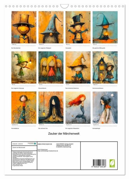 Liebevolle Illustrationen voller geheimnisvoller Wesen verzaubern Kinder und Erwachsene gleichermaßen. Mit seinen kunstvollen Bildern lädt dieser Kalender dazu ein, die Welt der Märchen und die grenzenlose Fantasie zu genießen. Perfekt als Geschenk für kleine und große Träumer. Die Illustrationen wurden mit Unterstützung von KI erzeugt und künstlerisch in Szene gesetzt.