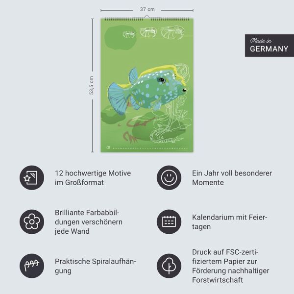 - Abtauchen in eine geheimnisvolle Welt: der Zauber der Meere-Monatskalender 2026 - Exotische Fische, Schildkröten und andere Meeres-Bewohner: mit 12 modern gestalteten Illustrationen in kräftigen Farben- Originelle Deko für maritimes Flair: Großer Wandkalender mit poppigem Artwork der Deutschen Künstlerin Chris Menke - nicht nur ein Geschenk für Tierfreunde - Monat für Monat ein dekorativer Begleiter für jedes stilvoll eingerichtete Zuhause: Kalender im Format 37 x 53,5 cm- Von klassischen Werken bis hin zu zeitgenössischem Design: die Kunstkalender von Heye im Athesia Kalenderverlag