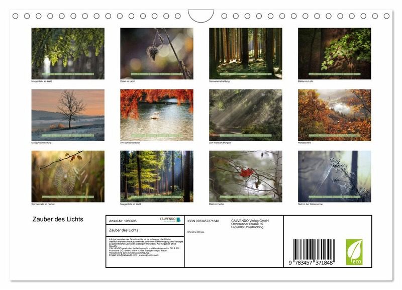 Der Kalender bietet eine Reihe wunderschöner Impressionen zu verschiedenen Jahres- und Tageszeiten, in denen der Zauber und das Licht der Natur zu spüren ist.