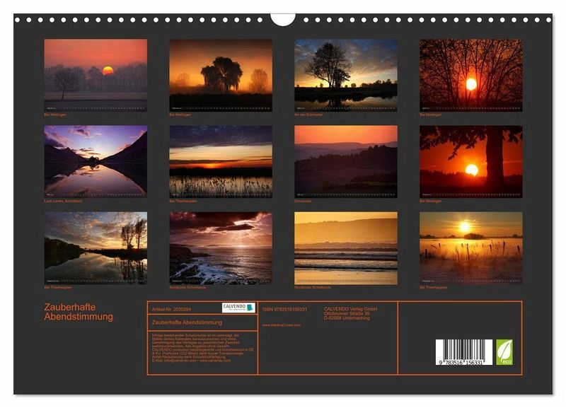 Hochwertiger Wandkalender mit 12 wunderschönen Bildern. Unsere Umwelt liegt uns am Herzen. Daher verwenden wir ausschließlich FSC-zertifizierte Papiere aus verantwortungsvoller Waldwirtschaft. Wir vermeiden Überproduktion und somit deutliche Abfallmengen, da wir bedarfsgerecht in Einzelfertigung in Deutschland (Made in Germany) produzieren. Wir halten unsere Transportwege kurz und sorgen für eine klimabewusste Logistik.
