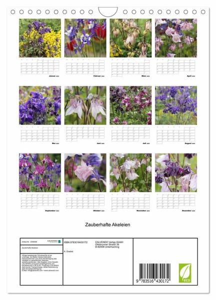 QUALITÄT - Hochwertiger Fotokalender mit 12 wunderschönen Motiven auf lichtbeständigem Bilderdruckpapier, robuste Spiralbindung mit Aufhängebügel.NACHHALTIG - deutliche Abfallreduzierung durch bedarfsgerechte Einzelstückfertigung, umweltfreundliches FSC-zertifiziertes Papier, Produktion in Deutschland, klimabewusste Logistik.PERFEKTES GESCHENK - Kalender für Freunde und Familie, für Kinder und Erwachsene, jung und alt, zu Weihnachten, Geburtstag oder zwischendurch.VIELFALT - Bildkalender in verschiedenen Formaten, z.B. DIN A5, DIN A4, DIN A3 sowie DIN A2. Ob Naturmotiv, Gemälde oder Fotos, ideal für ein persönliches Wohlfühlambiente.Akeleien lassen uns den Zauber ländlicher Gärten spüren. Die grazilen Schönheiten erobern Beete und Herzen im Handumdrehen. von Autor(in): A. Goebel
