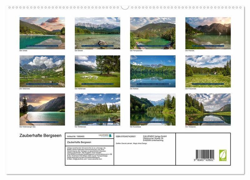 PREMIUM-LINIE - Brillanter Fotokalender mit 12 wunderschönen Motiven, Kunstdruck in Hochglanz in Museumsqualität.QUALITÄT - edle Materialien, stabile Rückwand mit 2 innovativen Einstecktaschen für eine optimale Präsentation an der Wand.NACHHALTIG - deutliche Abfallreduzierung durch bedarfsgerechte Einzelstückfertigung, umweltfreundliches FSC-zertifiziertes Papier, Produktion in Deutschland, klimabewusste Logistik.PERFEKTES GESCHENK - Kalender für Freunde und Familie, für Kinder und Erwachsene, jung und alt, zu Weihnachten, Geburtstag oder zwischendurch.Kleine und Größere Seen in den Alpensind eine Augenweide für jeden der die Bergwelt liebt. von Autor(in): Steffen Gierok ; Magik Artist Design