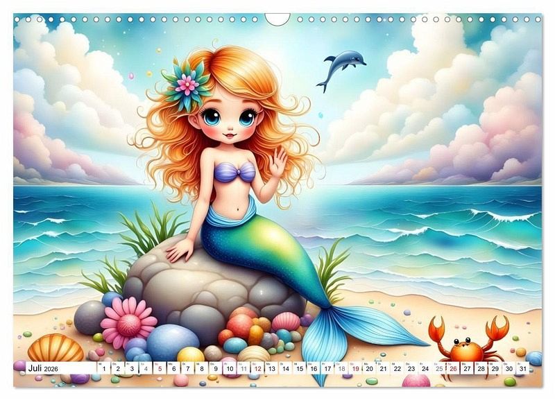 Juli: Kleine Meerjungfrau am Meeresstrand