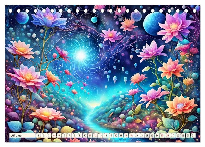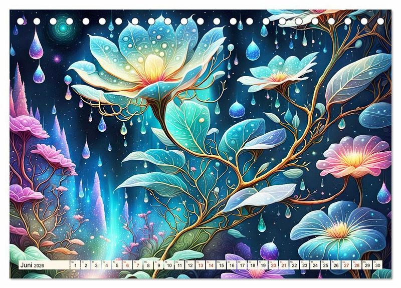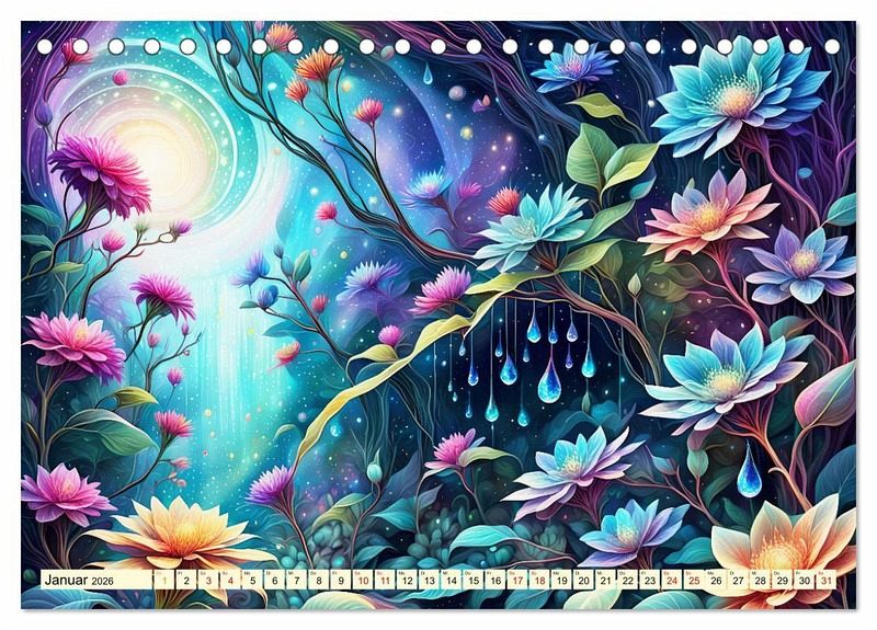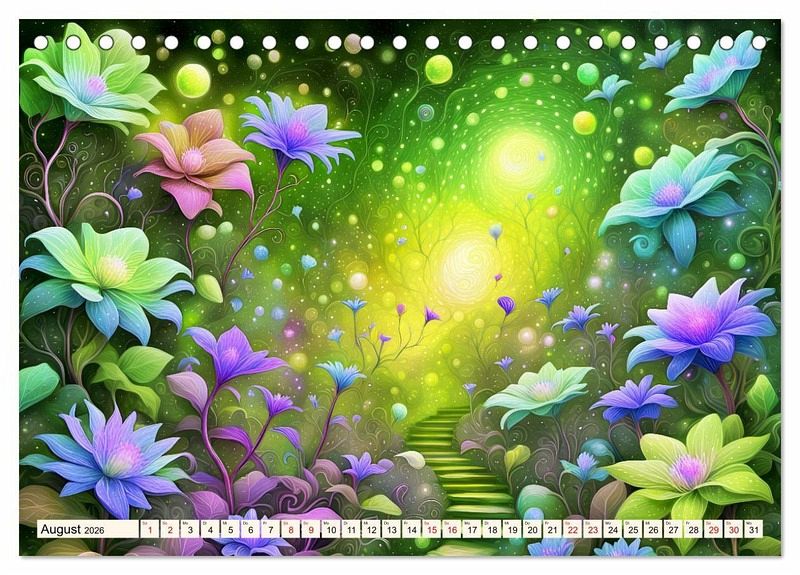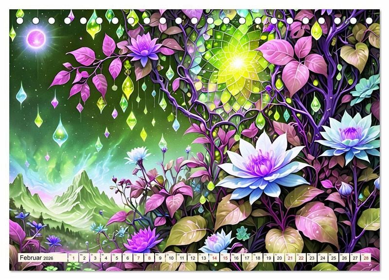 Tauchen Sie ein in die wundersame Welt eines wunderschönen Kalenders, wo künstliche Intelligenz auf unvergleichliche Blütenschönheit trifft und sie zum Leben erwachen. Jedes Bild verkörpert die Anmut der Blüten mit ihrer zauberhaften Erscheinung und ihrer geheimnisvollen Aura. Fangen sie die Essenz des Blütenmärchens ein und verleihen Ihrem Raum eine magische Atmosphäre, oder schenken Sie es als perfektes Geschenk an Ihre Freunde die Blumenliebhaber sind.