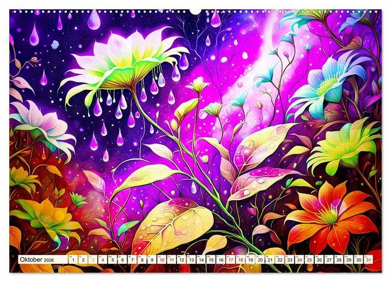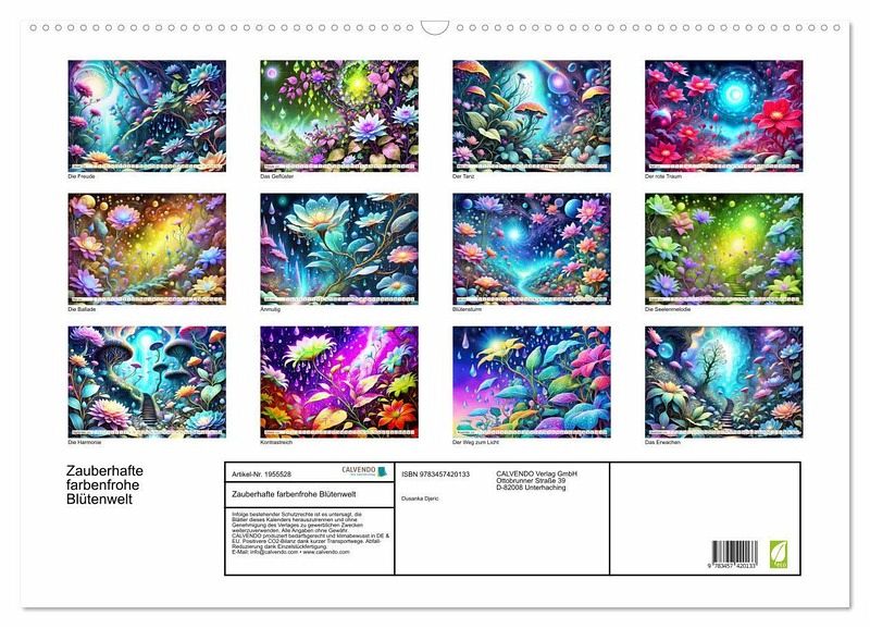Tauchen Sie ein in die wundersame Welt eines wunderschönen Kalenders, wo künstliche Intelligenz auf unvergleichliche Blütenschönheit trifft und sie zum Leben erwachen. Jedes Bild verkörpert die Anmut der Blüten mit ihrer zauberhaften Erscheinung und ihrer geheimnisvollen Aura. Fangen sie die Essenz des Blütenmärchens ein und verleihen Ihrem Raum eine magische Atmosphäre, oder schenken Sie es als perfektes Geschenk an Ihre Freunde die Blumenliebhaber sind.