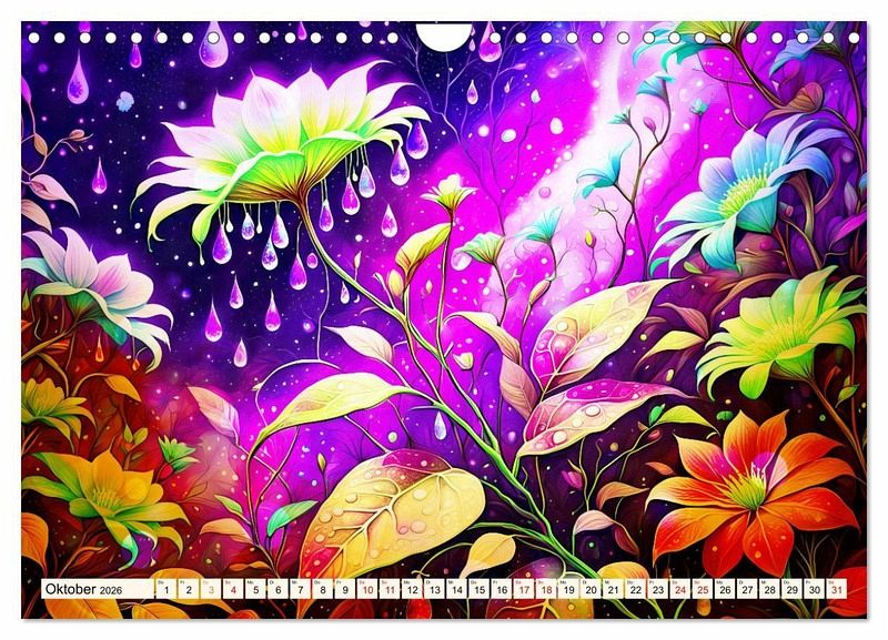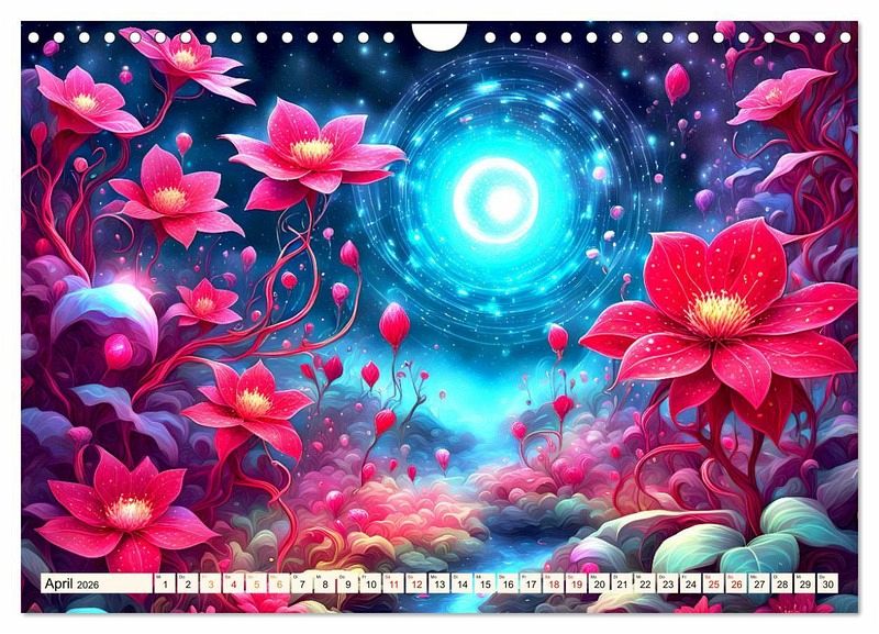 Tauchen Sie ein in die wundersame Welt eines wunderschönen Kalenders, wo künstliche Intelligenz auf unvergleichliche Blütenschönheit trifft und sie zum Leben erwachen. Jedes Bild verkörpert die Anmut der Blüten mit ihrer zauberhaften Erscheinung und ihrer geheimnisvollen Aura. Fangen sie die Essenz des Blütenmärchens ein und verleihen Ihrem Raum eine magische Atmosphäre, oder schenken Sie es als perfektes Geschenk an Ihre Freunde die Blumenliebhaber sind.