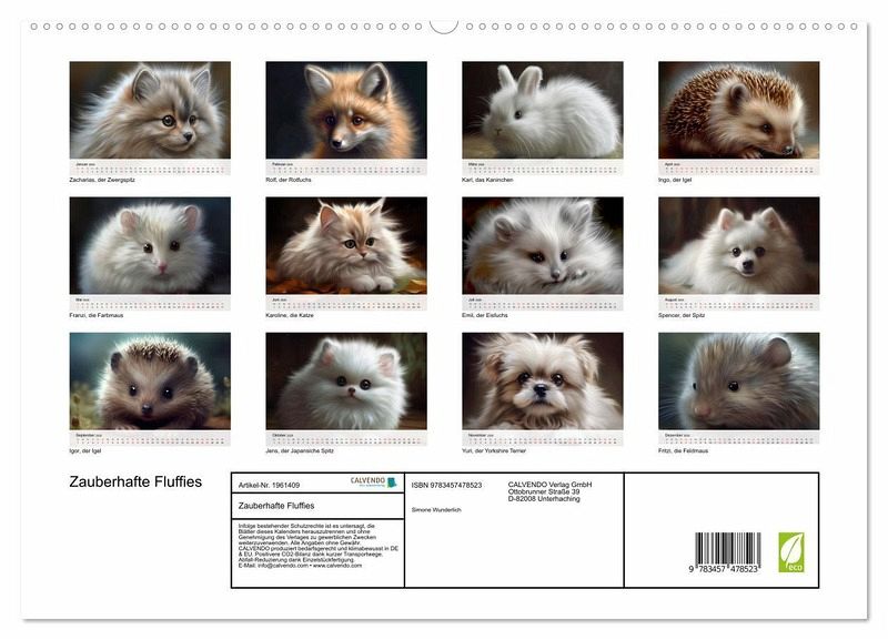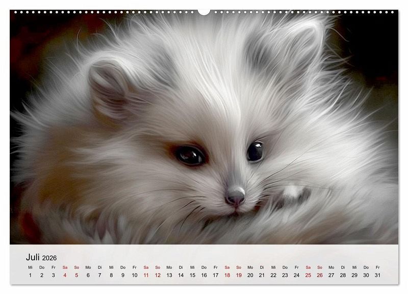 Die süßesten Begleiter für das ganze Jahr! Unser "Zauberhafte Fluffies" Kalender, von KI kreiert, bringt dir Monat für Monat die geballte Ladung flauschiger Niedlichkeit. Von verspielten Kätzchen bis zu knuffigen Welpen - jeder Tag wird von einem entzückenden, virtuell erschaffenen Tierfreund begleitet. Hol dir deinen täglichen Dosis Flausch und gute Laune mit diesem bezaubernden Kalender!