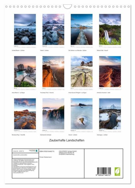 QUALITÄT - Hochwertiger Fotokalender mit 12 wunderschönen Motiven auf lichtbeständigem Bilderdruckpapier, robuste Spiralbindung mit Aufhängebügel.NACHHALTIG - deutliche Abfallreduzierung durch bedarfsgerechte Einzelstückfertigung, umweltfreundliches FSC-zertifiziertes Papier, Produktion in Deutschland, klimabewusste Logistik.PERFEKTES GESCHENK - Kalender für Freunde und Familie, für Kinder und Erwachsene, jung und alt, zu Weihnachten, Geburtstag oder zwischendurch.VIELFALT - Bildkalender in verschiedenen Formaten, z.B. DIN A5, DIN A4, DIN A3 sowie DIN A2. Ob Naturmotiv, Gemälde oder Fotos, ideal für ein persönliches Wohlfühlambiente.Eine Fotoreise durch atemberaubende Landschaften rund um den Globus von Autor(in): Florian Westermann