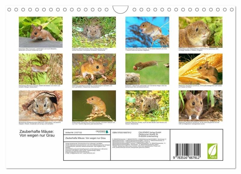 Geliebt und verehrt in Comics und Zeichentrickfilmen, sind die echten kleinen Nager den meisten Menschen doch ein Graus. Allzu verheerend ist der Ruf, der ihnen vorauseilt. Mit diesem Kalender haben Sie die Gelegenheit, sich dem possierlichen Plagegeist aus sicherer Entfernung und ganz vorurteilsfrei zu nähern. Es wird sich lohnen!