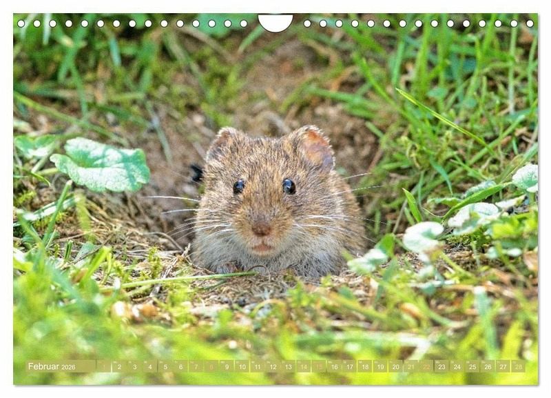 Februar: Feldmaus (Microtus arvalis), lebt in mäßig dichten bis sehr dichten Kolonien in komplexen Erdbauen, Niederlande