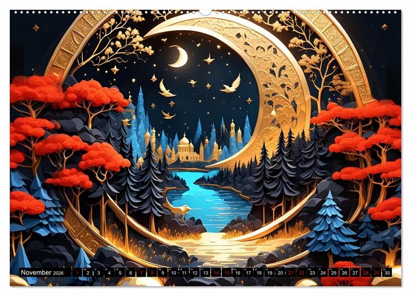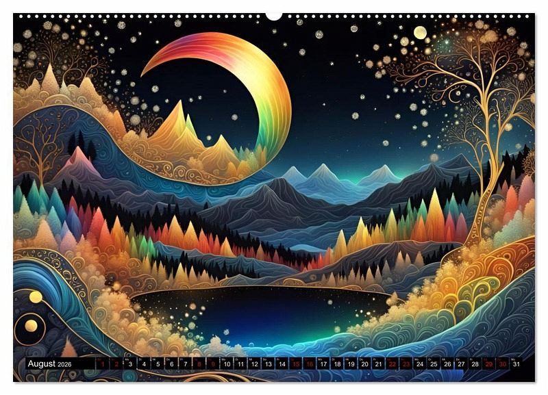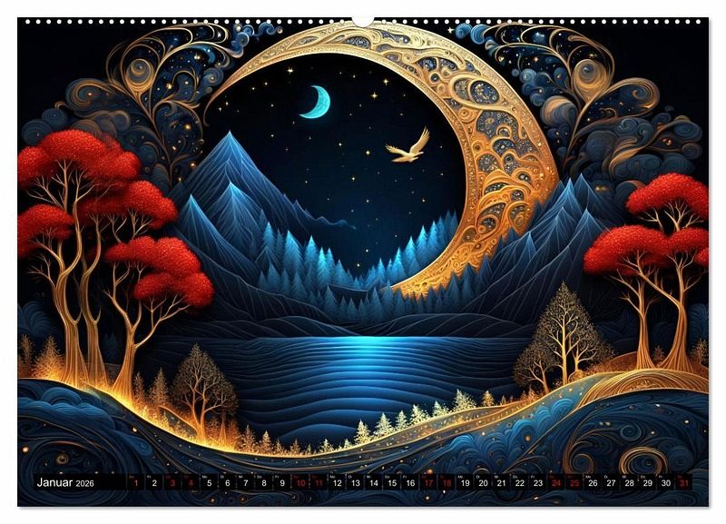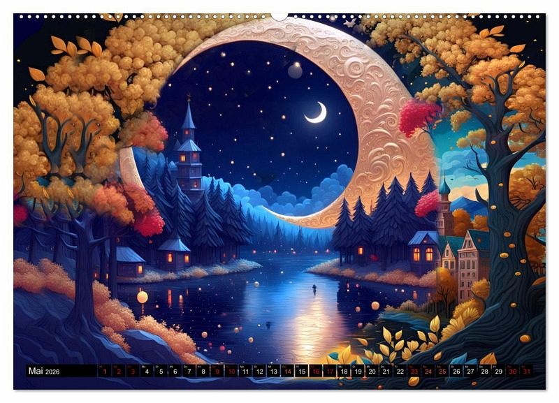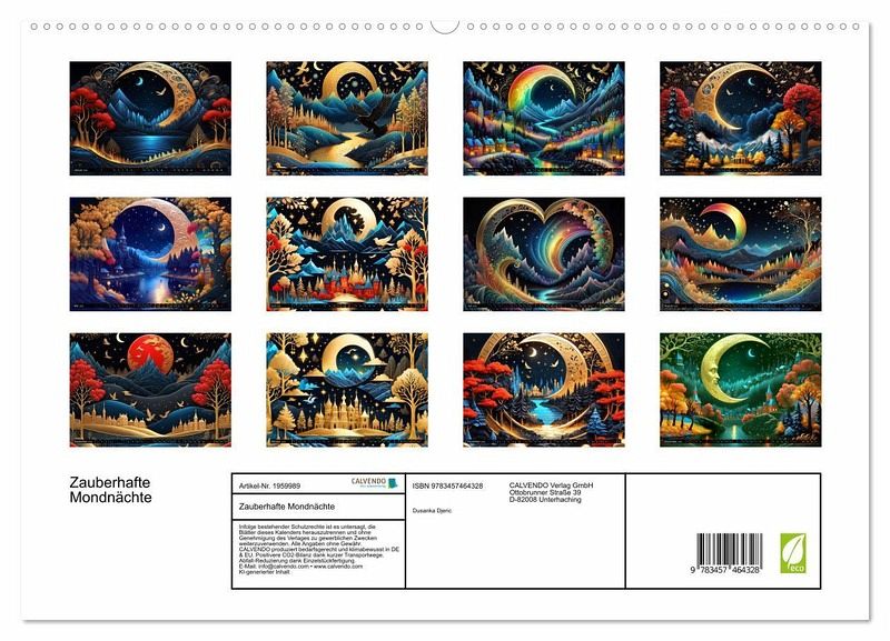 PREMIUM-LINIE - Brillanter Fotokalender mit 12 wunderschönen Motiven, Kunstdruck in Hochglanz in Museumsqualität.QUALITÄT - edle Materialien, stabile Rückwand mit 2 innovativen Einstecktaschen für eine optimale Präsentation an der Wand.NACHHALTIG - deutliche Abfallreduzierung durch bedarfsgerechte Einzelstückfertigung, umweltfreundliches FSC-zertifiziertes Papier, Produktion in Deutschland, klimabewusste Logistik.PERFEKTES GESCHENK - Kalender für Freunde und Familie, für Kinder und Erwachsene, jung und alt, zu Weihnachten, Geburtstag oder zwischendurch.Fantasie Mondnächte mit KI erstellt. von Autor(in): Dusanka Djeric
