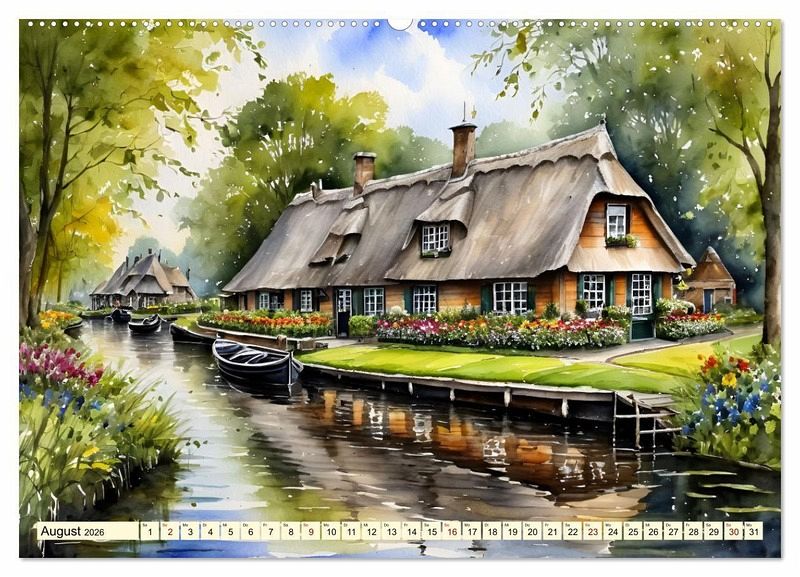 Die an die Nordsee grenzenden Niederlande sind bekannt für ihre flache Landschaft, die von grünen Wiesen, Windmühlen und Kanälen geprägt ist. Die Architektur in den Niederlanden ist vielfältig und reicht von traditionellen holländischen Fachwerkhäusern bis hin zu modernen Gebäuden. Die typischen holländischen Giebelhäuser mit ihren schmalen Fassaden und steilen Dächern prägen das Stadtbild vieler Orte. Die Niederlande sind auch für ihre zahlreichen Schlösser und Herrenhäuser bekannt, die inmitten malerischer Landschaften liegen. Insgesamt zeichnen sich die Niederlande durch eine harmonische Verbindung von Landschaft und Architektur aus, die das Land zu einem beliebten Reiseziel für Architektur- und Naturbegeisterte macht. Die schönsten Ziele wurden als Aquarelle durch die KI generiert.