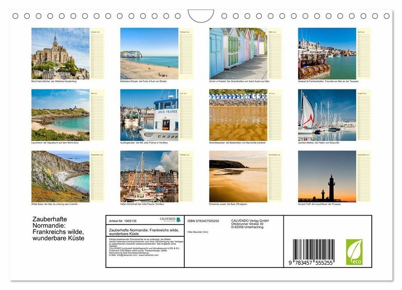Beeindruckende Landschaften mit ursprünglicher Natur wechseln sich ab mit geschichtsträchtigen Stätten, malerische Stränden und wundervolle Dörfern. Wer Frankreich mag, wird diesen Normandie-Kalender lieben.