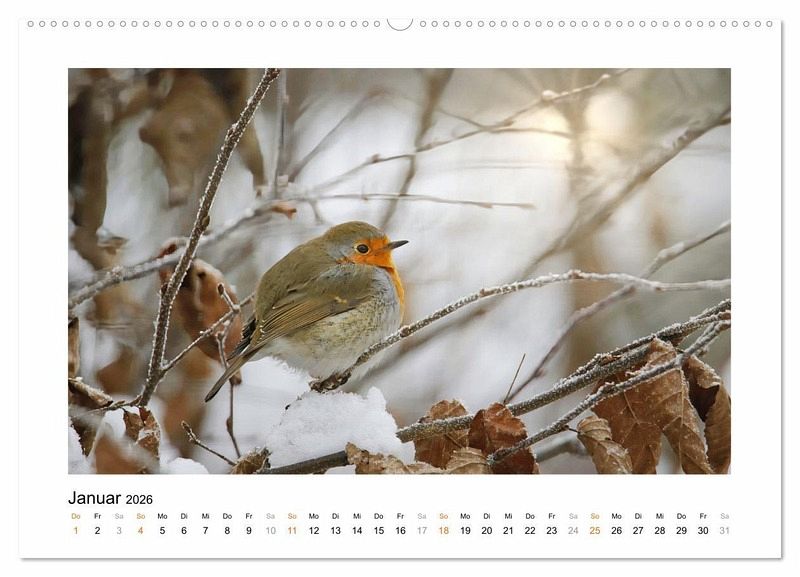 Eine kräftig orange Brust und Kehle, keine Frage, das ist ein Rotkehlchen. Es gehört zu unseren beliebtesten Singvögeln und wird von der Autorin liebevoll "Knutschkugel" genannt. Freuen Sie sich jeden Monat über eine bezaubernde Aufnahme dieser kleinen putzigen Gesellen.