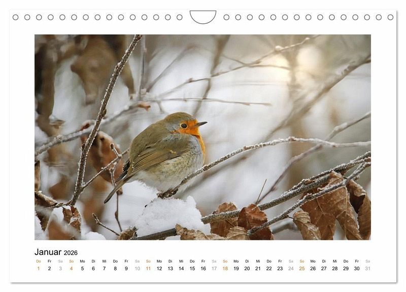 Eine kräftig orange Brust und Kehle, keine Frage, das ist ein Rotkehlchen. Es gehört zu unseren beliebtesten Singvögeln und wird von der Autorin liebevoll "Knutschkugel" genannt. Freuen Sie sich jeden Monat über eine bezaubernde Aufnahme dieser kleinen putzigen Gesellen.