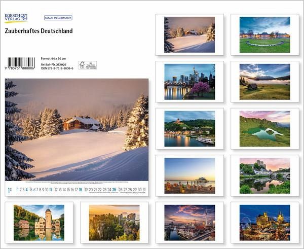 Mit diesem Deutschland-Kalender können Sie großartige Motive zum kleinen Preis genießen. Jedes Monatsblatt präsentiert eine stimmungsvolle Aufnahme der schönsten Natur- oder Kulturschätze des Landes. Lassen Sie sich verzaubern!