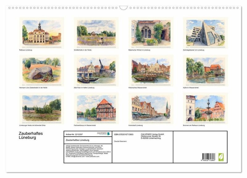 QUALITÄT - Hochwertiger Fotokalender mit 12 wunderschönen Motiven auf lichtbeständigem Bilderdruckpapier, robuste Spiralbindung mit Aufhängebügel.NACHHALTIG - deutliche Abfallreduzierung durch bedarfsgerechte Einzelstückfertigung, umweltfreundliches FSC-zertifiziertes Papier, Produktion in Deutschland, klimabewusste Logistik.PERFEKTES GESCHENK - Kalender für Freunde und Familie, für Kinder und Erwachsene, jung und alt, zu Weihnachten, Geburtstag oder zwischendurch.VIELFALT - Bildkalender in verschiedenen Formaten, z.B. DIN A5, DIN A4, DIN A3 sowie DIN A2. Ob Naturmotiv, Gemälde oder Fotos, ideal für ein persönliches Wohlfühlambiente.Künstlerische Bilder im Aquarellstil von Stadt und Heide von Autor(in): Claudia Kleemann