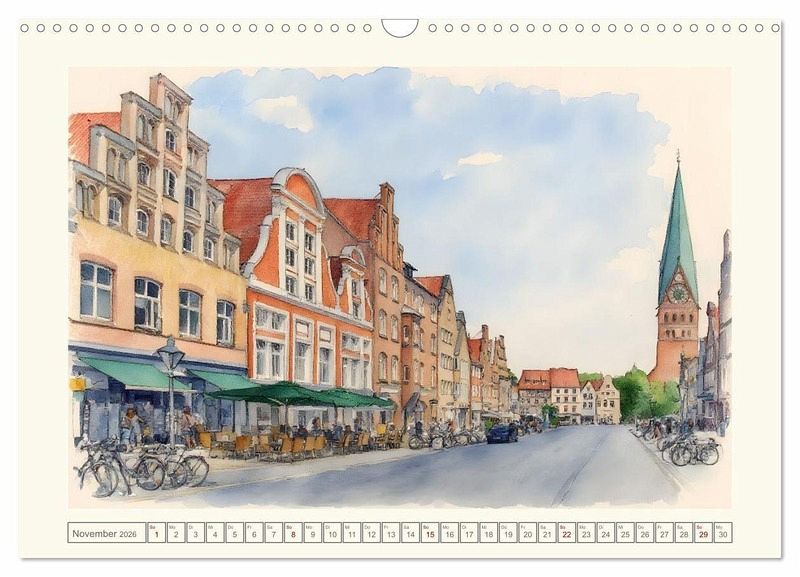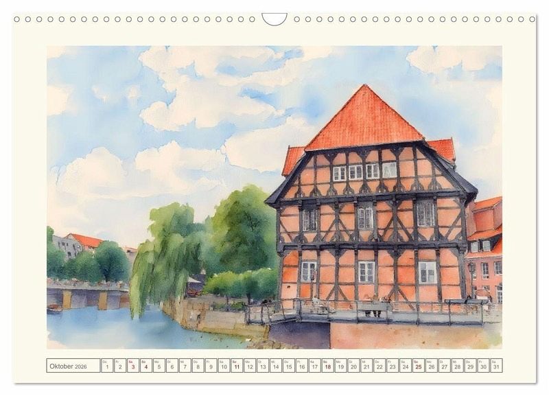 Lüneburg ist eine charmante, historische Stadt mit reicher Kultur und beeindruckender Geschichte. Die Stadt ist berühmt für ihre gut erhaltene mittelalterliche Altstadt mit prächtigen Giebelhäusern, Fachwerkbauten und engen Gassen, die Leuphana Universität Lüneburg bringt eine lebendige, junge Atmosphäre in die altehrwürdige Stadt. Die Lüneburger Heide ist ein Naturparadies mit einzigartiger Flora und Fauna, ideal für Erholung, Wandern und Naturerlebnisse. Sie erstreckt sich südlich und westlich von Lüneburg und ist berühmt für ihre weiten, lilafarbenen Heideflächen. Die künstlerischen Bilder im Aquarellstil entstanden durch Bildbearbeitung aus Originalfotos.
