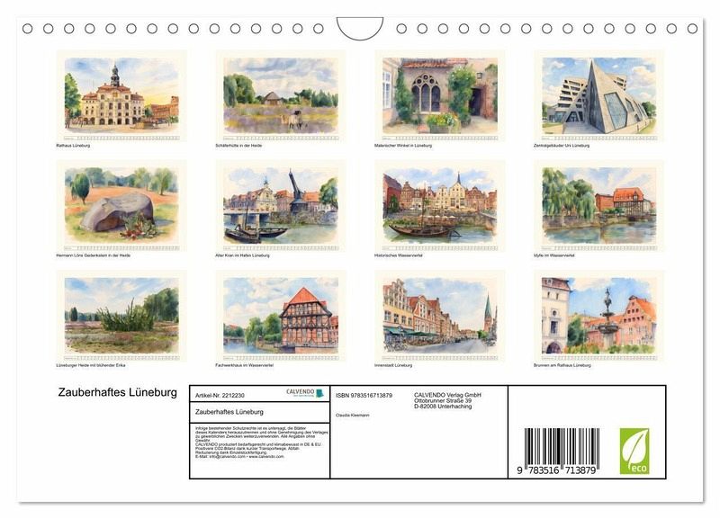 QUALITÄT - Hochwertiger Fotokalender mit 12 wunderschönen Motiven auf lichtbeständigem Bilderdruckpapier, robuste Spiralbindung mit Aufhängebügel.NACHHALTIG - deutliche Abfallreduzierung durch bedarfsgerechte Einzelstückfertigung, umweltfreundliches FSC-zertifiziertes Papier, Produktion in Deutschland, klimabewusste Logistik.PERFEKTES GESCHENK - Kalender für Freunde und Familie, für Kinder und Erwachsene, jung und alt, zu Weihnachten, Geburtstag oder zwischendurch.VIELFALT - Bildkalender in verschiedenen Formaten, z.B. DIN A5, DIN A4, DIN A3 sowie DIN A2. Ob Naturmotiv, Gemälde oder Fotos, ideal für ein persönliches Wohlfühlambiente.Künstlerische Bilder im Aquarellstil von Stadt und Heide von Autor(in): Claudia Kleemann