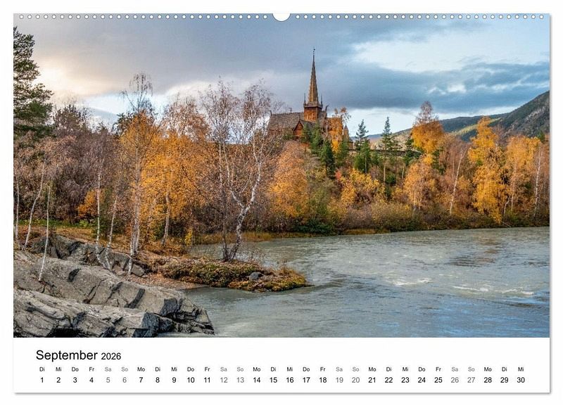 September: Blick auf Stabkirche Lom