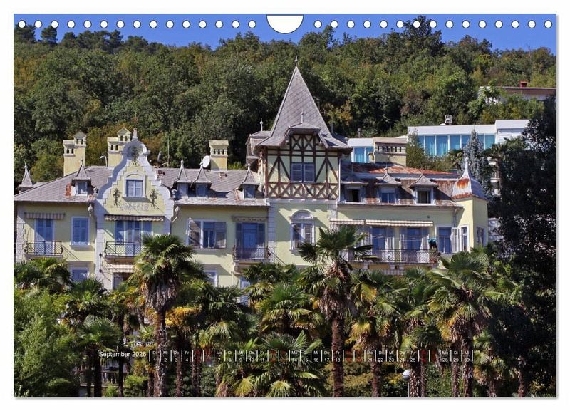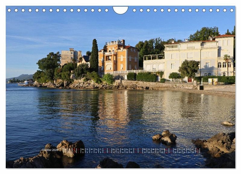 Der traditionsreiche kroatische Kurort Opatija atmet noch immer den Geist großartiger K+K Zeiten, als es zum heilklimatischen Seebad Österreichs an der Adria wurde. Zahlreiche gekrönte Häupter waren zu Gast in historischen Hotels und Villen, die sich an der Strandpromenade Lungomare aneinanderreihen. Der Kalender nimmt den Betrachter mit auf einen Spaziergang am Meer.