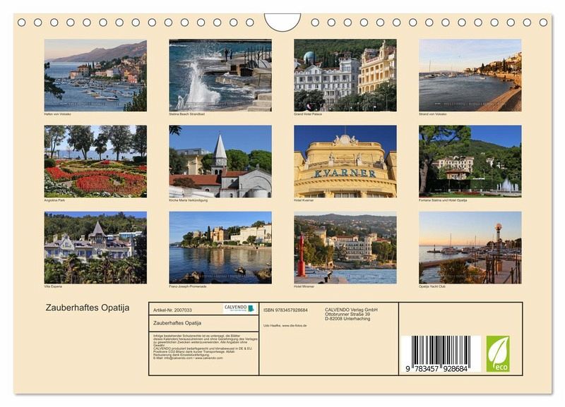 QUALITÄT - Hochwertiger Fotokalender mit 12 wunderschönen Motiven auf lichtbeständigem Bilderdruckpapier, robuste Spiralbindung mit Aufhängebügel.NACHHALTIG - deutliche Abfallreduzierung durch bedarfsgerechte Einzelstückfertigung, umweltfreundliches FSC-zertifiziertes Papier, Produktion in Deutschland, klimabewusste Logistik.PERFEKTES GESCHENK - Kalender für Freunde und Familie, für Kinder und Erwachsene, jung und alt, zu Weihnachten, Geburtstag oder zwischendurch.VIELFALT - Bildkalender in verschiedenen Formaten, z.B. DIN A5, DIN A4, DIN A3 sowie DIN A2. Ob Naturmotiv, Gemälde oder Fotos, ideal für ein persönliches Wohlfühlambiente.Impressionen des charmanten Seebades an der Adria von Autor(in): Udo Haafke