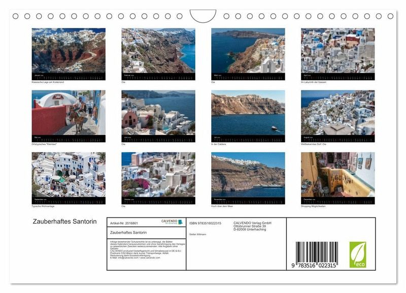 QUALITÄT - Hochwertiger Fotokalender mit 12 wunderschönen Motiven auf lichtbeständigem Bilderdruckpapier, robuste Spiralbindung mit Aufhängebügel.NACHHALTIG - deutliche Abfallreduzierung durch bedarfsgerechte Einzelstückfertigung, umweltfreundliches FSC-zertifiziertes Papier, Produktion in Deutschland, klimabewusste Logistik.PERFEKTES GESCHENK - Kalender für Freunde und Familie, für Kinder und Erwachsene, jung und alt, zu Weihnachten, Geburtstag oder zwischendurch.VIELFALT - Bildkalender in verschiedenen Formaten, z.B. DIN A5, DIN A4, DIN A3 sowie DIN A2. Ob Naturmotiv, Gemälde oder Fotos, ideal für ein persönliches Wohlfühlambiente.Auf der für viele Menschen schönsten Kykladeninsel: Santorin! von Autor(in): Stefan Willmann