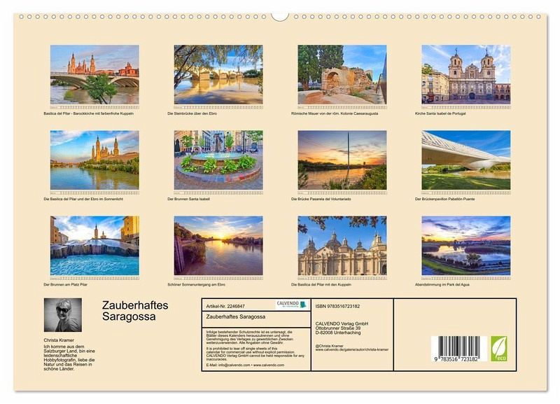 PREMIUM-LINIE - Brillanter Fotokalender mit 12 wunderschönen Motiven, Kunstdruck in Hochglanz in Museumsqualität.QUALITÄT - edle Materialien, stabile Rückwand mit 2 innovativen Einstecktaschen für eine optimale Präsentation an der Wand.NACHHALTIG - deutliche Abfallreduzierung durch bedarfsgerechte Einzelstückfertigung, umweltfreundliches FSC-zertifiziertes Papier, Produktion in Deutschland, klimabewusste Logistik.PERFEKTES GESCHENK - Kalender für Freunde und Familie, für Kinder und Erwachsene, jung und alt, zu Weihnachten, Geburtstag oder zwischendurch.Wunderschöne Impressionen aus der Hauptstadt Aragoniens von Autor(in): Christa Kramer