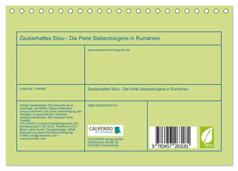 QUALITÄT - Hochwertiger Fotokalender mit 12 wunderschönen Motiven auf lichtbeständigem Bilderdruckpapier, robuste Spiralbindung.NACHHALTIG - deutliche Abfallreduzierung durch bedarfsgerechte Einzelstückfertigung, umweltfreundliches FSC-zertifiziertes Papier, Produktion in Deutschland, klimabewusste Logistik.PERFEKTES GESCHENK - Kalender für Freunde und Familie, für Kinder und Erwachsene, jung und alt, zu Weihnachten, Geburtstag oder zwischendurch.VIELFALT - Bildkalender in verschiedenen Formaten, z.B. DIN A5, DIN A4, DIN A3 sowie DIN A2. Ob Naturmotiv, Gemälde oder Fotos, ideal für ein persönliches Wohlfühlambiente.Sibiu entdecken - Einblicke in Siebenbürgen von Autor(in): drachenkind-fotografie
