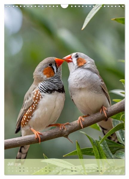 Tauchen Sie ein in die charmante Welt der Zebrafinken mit diesem einzigartigen Wandkalender. Jeden Monat erleben Sie eine neue, liebevoll inszenierte Szene, die die alltäglichen Momente dieser bezaubernden Vögel zeigt - von entspanntem Sonnenbaden bis hin zum Nestbau. Perfekt für Vogelliebhaber und Naturliebhaber gleichermaßen, bringt dieser Kalender Freude und eine ruhige Atmosphäre in jeden Raum. Jede KI-generierte Illustration ist detailreich und fängt die Persönlichkeit der Zebrafinken ein, was ihn zu einem besonderen Begleiter durch das Jahr macht. Holen Sie sich einen Hauch von Natur und Leichtigkeit in Ihr Zuhause oder Büro und lassen Sie sich jeden Tag aufs Neue verzaubern!