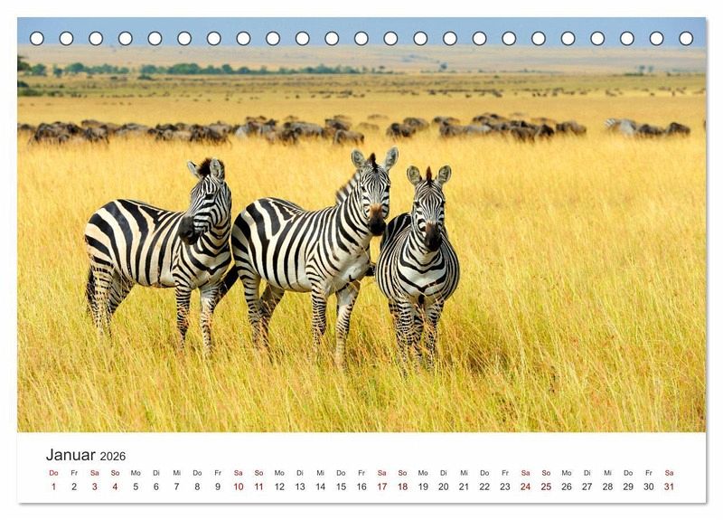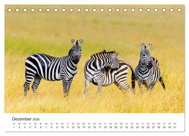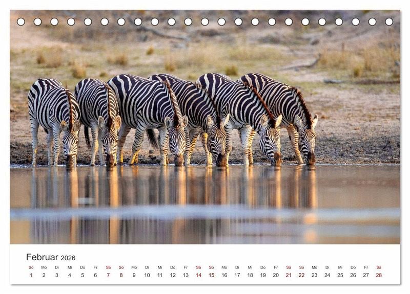 Erlebe jeden Monat ein neues Abenteuer mit unserem Zebra-Kalender! Die wunderschönen Fotografien von Zebras in ihrer natürlichen Umgebung werden Dich begeistern. Jeder Monat bietet ein einzigartiges Bild. Der Kalender ist perfekt für Naturliebhaber und alle, die eine schöne und praktische Dekoration suchen. Bestelle jetzt Deinen Zebra-Kalender und erlebe die Wildnis jeden Tag aufs Neue!