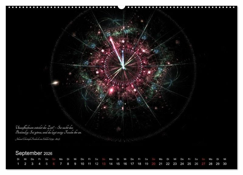 Ihre Zitate, kombiniert mit moderner Computergrafik, sind die Grundlage für diese Kalenderblätter.