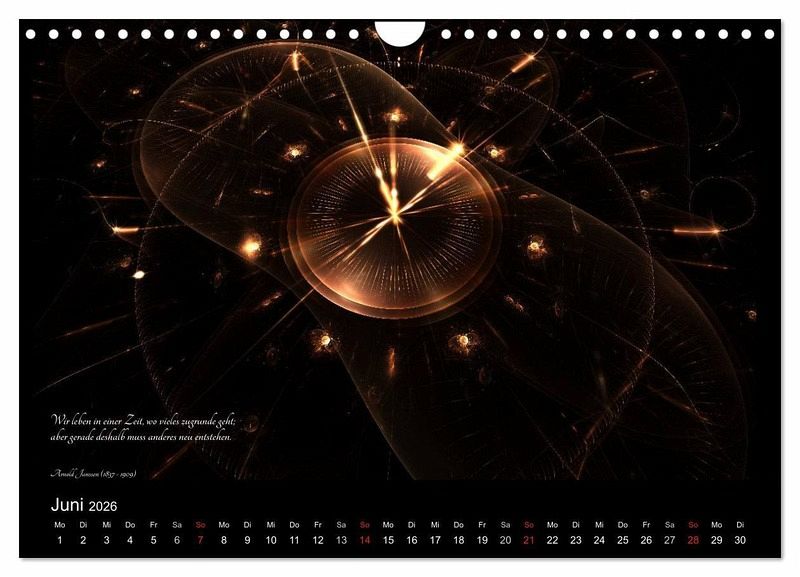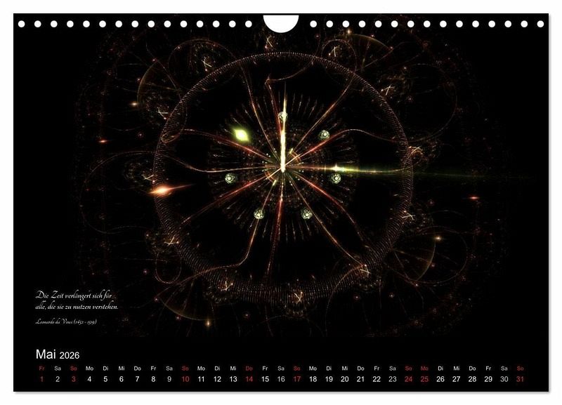 Ihre Zitate, kombiniert mit moderner Computergrafik, sind die Grundlage für diese Kalenderblätter.
