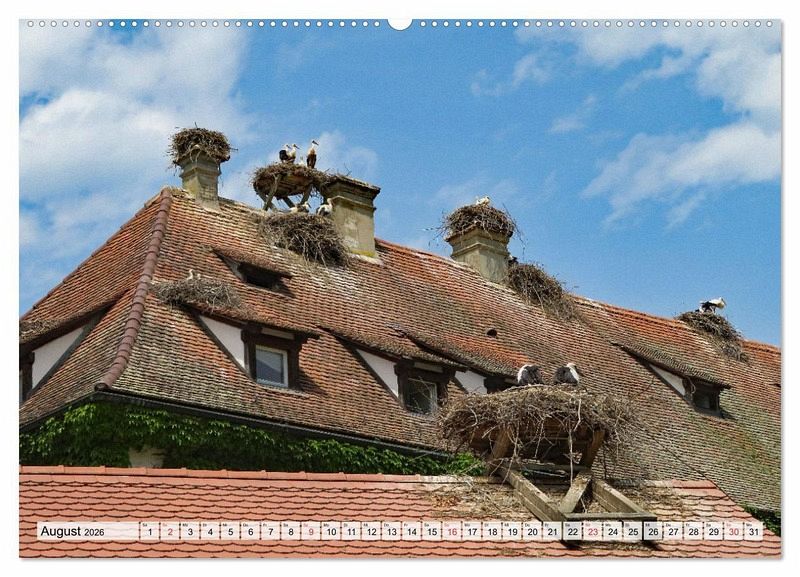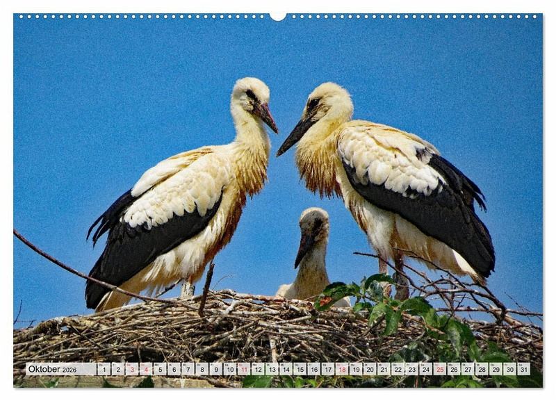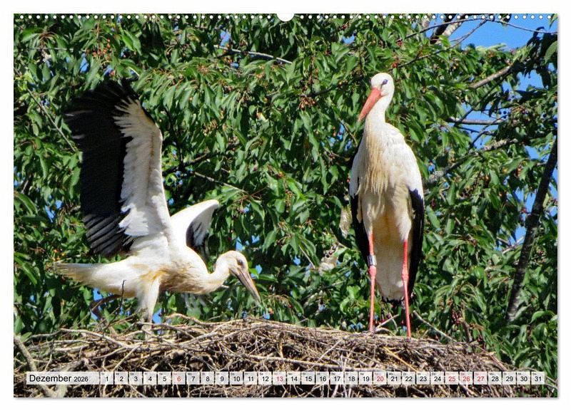 Weißstörche, auch "Klapperstörche" genannt - das sind die Stars in diesem Kalender. Sie sind weiß mit schwarzen Schwungfedern, die Beine und der lange Schnabel sind rot. Ein Storchennest auf dem Hausdach gilt als Glücksbringer. Der Kalender zeigt Motive aus dem Leben dieser liebenswerten Tiere.