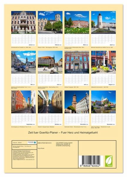 QUALITÄT - Hochwertiger Fotokalender mit 12 wunderschönen Motiven auf lichtbeständigem Bilderdruckpapier, robuste Spiralbindung mit Aufhängebügel.NACHHALTIG - deutliche Abfallreduzierung durch bedarfsgerechte Einzelstückfertigung, umweltfreundliches FSC-zertifiziertes Papier, Produktion in Deutschland, klimabewusste Logistik.PERFEKTES GESCHENK - Kalender für Freunde und Familie, für Kinder und Erwachsene, jung und alt, zu Weihnachten, Geburtstag oder zwischendurch.VIELFALT - Bildkalender in verschiedenen Formaten, z.B. DIN A5, DIN A4, DIN A3 sowie DIN A2. Ob Naturmotiv, Gemälde oder Fotos, ideal für ein persönliches Wohlfühlambiente.Goerlitz Planer fuer Herz und Heimatgefuehl - entdecken, planen, lieben von Autor(in): Tanja Riedel