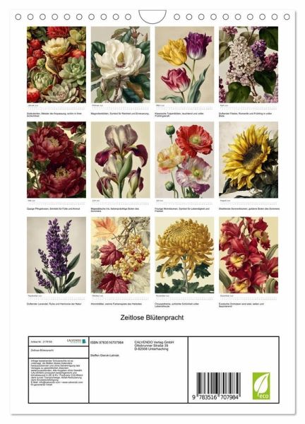 QUALITÄT - Hochwertiger Fotokalender mit 12 wunderschönen Motiven auf lichtbeständigem Bilderdruckpapier, robuste Spiralbindung mit Aufhängebügel.NACHHALTIG - deutliche Abfallreduzierung durch bedarfsgerechte Einzelstückfertigung, umweltfreundliches FSC-zertifiziertes Papier, Produktion in Deutschland, klimabewusste Logistik.PERFEKTES GESCHENK - Kalender für Freunde und Familie, für Kinder und Erwachsene, jung und alt, zu Weihnachten, Geburtstag oder zwischendurch.VIELFALT - Bildkalender in verschiedenen Formaten, z.B. DIN A5, DIN A4, DIN A3 sowie DIN A2. Ob Naturmotiv, Gemälde oder Fotos, ideal für ein persönliches Wohlfühlambiente.Dieser Kalender vereint die zeitlose Schönheit klassischer Blumen- und Pflanzenillustrationen. von Autor(in): Steffen Gierok-Latniak