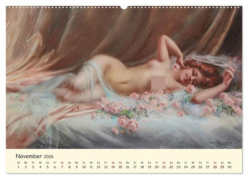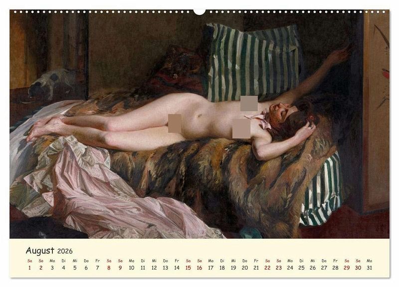 Der Kalender präsentiert eine exquisite Sammlung von Gemälden, die die zeitlose Schönheit liegender weiblicher Akte in den Mittelpunkt stellen. Jeder Monat offenbart die faszinierende Anmut und Sinnlichkeit des weiblichen Körpers, eingefangen in Momenten der Ruhe und Gelassenheit. Die kunstvollen Darstellungen spiegeln nicht nur die Ästhetik und Harmonie der weiblichen Formen wider, sondern auch die Kunstfertigkeit der Künstler, die diese Szenen mit sanften Farben und weichen Linien zum Leben erwecken. Ein Kalender, der Eleganz und Kunstgenuss für das ganze Jahr verspricht.