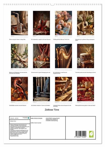 PREMIUM-LINIE - Brillanter Fotokalender mit 12 wunderschönen Motiven, Kunstdruck in Hochglanz in Museumsqualität.QUALITÄT - edle Materialien, stabile Rückwand mit 2 innovativen Einstecktaschen für eine optimale Präsentation an der Wand.NACHHALTIG - deutliche Abfallreduzierung durch bedarfsgerechte Einzelstückfertigung, umweltfreundliches FSC-zertifiziertes Papier, Produktion in Deutschland, klimabewusste Logistik.PERFEKTES GESCHENK - Kalender für Freunde und Familie, für Kinder und Erwachsene, jung und alt, zu Weihnachten, Geburtstag oder zwischendurch.Zwölf Szenen voller Klang, Staub, Emotion und Geschichte. Instrumente als Kunstwerke, Musik als Gefühl und jede Jahreszeit als Melodie. von Autor(in): Steffen Gierok-Latniak