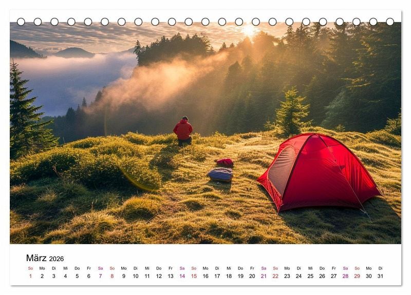Entdecken Sie mit diesem Kalender die Schönheit des Zeltens das ganze Jahr über. Stellen Sie sich vor, Sie wachen mit einem Sonnenaufgang auf, der die Landschaft in goldenes Licht taucht, oder Sie beenden Ihren Tag mit einem Sonnenuntergang, der den Himmel in Rosa- und Orangetönen färbt. Mit jeder Seite werden Sie an einen Ort versetzt, an dem Sie die Schönheit und Ruhe der Natur genießen können. Der Fotokünstler Peter Roder hat wunderschöne KI-Bilder gestaltet und zusammengestellt. Ein traumhafter Kalender für alle Campingfans und solche die es werden wollen.