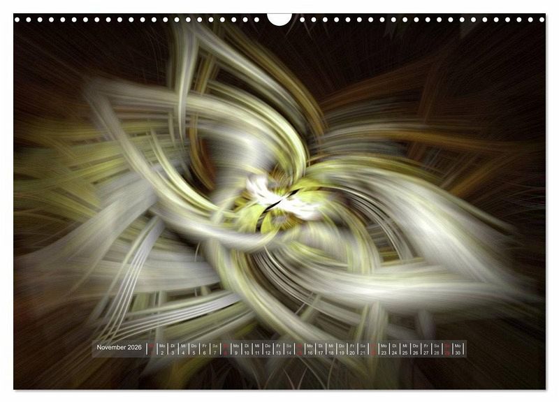 Dieser Kalender stellt den Zyklus eines Jahres in farbenprächtigen aber auch filigranen, abstrakten Bildern dar. Die feinen Strukturen, die pastellfarbigen Flächen, die explodieren Farben ziehen den Betrachter in das Bild und laden zum meditieren ein.