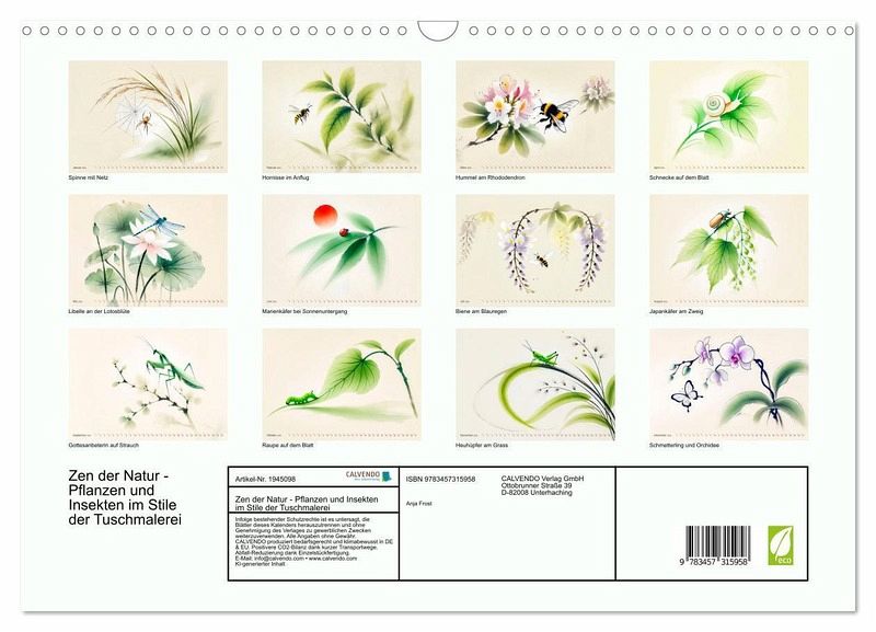 QUALITÄT - Hochwertiger Fotokalender mit 12 wunderschönen Motiven auf lichtbeständigem Bilderdruckpapier, robuste Spiralbindung mit Aufhängebügel.NACHHALTIG - deutliche Abfallreduzierung durch bedarfsgerechte Einzelstückfertigung, umweltfreundliches FSC-zertifiziertes Papier, Produktion in Deutschland, klimabewusste Logistik.PERFEKTES GESCHENK - Kalender für Freunde und Familie, für Kinder und Erwachsene, jung und alt, zu Weihnachten,Geburtstag oder zwischendurch.VIELFALT - Bildkalender in verschiedenen Formaten, z.B. DIN A5, DIN A4, DIN A3 sowie DIN A2. Ob Naturmotiv, Gemälde oder Fotos, ideal für ein persönliches Wohlfühlambiente.Insekten und Pflanzen in der KI-Kunst des Fernen Ostens von Autor(in): Anja Frost