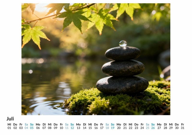 Momente der Klarheit in einem lauten Alltag zu finden, ist eine Kunst. Der Kalender "Zen-Motive & Meditation" begleitet durch das Jahr mit Bildern, die eine Oase der Ruhe schaffen und den Geist sanft zur Konzentration führen. Dieser Kalender ist eine ideale Wahl: * Für Menschen, die Achtsamkeit und Meditation in ihren Alltag integrieren möchten. * Für Liebhaber von minimalistischer Ästhetik und klaren Kompositionen. * Für alle, die ein Geschenk suchen, das Entspannung und Wohlbefinden fördert. Jeder Monat präsentiert eine sorgfältig ausgewählte Szene, die von der Zen Philosophie inspiriert ist. Sanfte Farbverläufe, ausgewogene Formen und die Reduktion auf das Essenzielle prägen die Motive. Diese Kompositionen sind keine Fotografien oder Malereien im klassischen Sinn. Sie sind das Ergebnis eines kreativen Prozesses, in dem menschliche Vision und die Rechenkraft moderner Algorithmen zu einer neuen Form visueller Harmonie verschmelzen. Jedes Bild ist ein stiller Impuls, der den Betrachter einlädt, den Moment bewusst wahrzunehmen. Mit dem Kauf dieses Kalenders kann man Folgendes erwarten: * Zwölf minimalistische Motive, die Monat für Monat für visuelle Ausgeglichenheit sorgen. * Ein praktisches Kalendarium, das ausreichend Platz für eigene Notizen bietet. * Eine tägliche Erinnerung an die Bedeutung von innerer Ruhe und Gelassenheit. Der Kalender "Zen-Motive & Meditation" ist mehr als nur ein Zeitplaner; er ist ein Begleiter auf dem Weg zu mehr innerem Frieden. Eine Entdeckungsreise durch die stillen Landschaften der Seele erwartet den Betrachter. Es lohnt sich, die einzelnen Monatsblätter zu entdecken und sich von ihrer beruhigenden Wirkung inspirieren zu lassen.