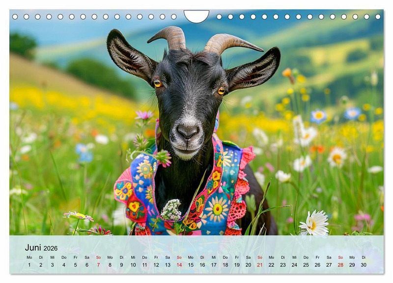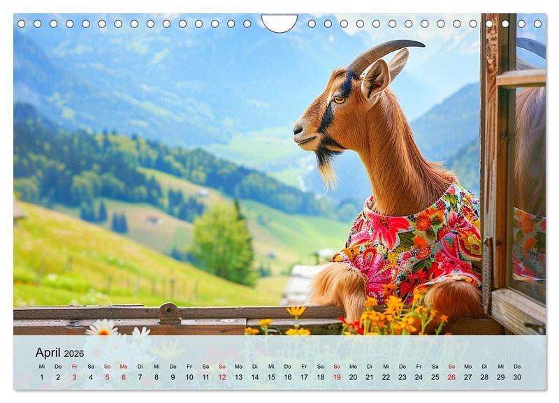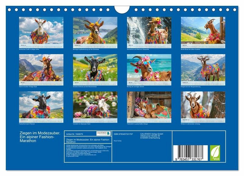 Tauchen Sie ein in die wundersame Welt der Ziegenmode! Diese Bilder wurden mit Hilfe von KI erstellt und zeigen moderne Ziegen, die sich in den Bergen und auf den Wiesen als echte Fashionistas präsentieren. Von eleganter Kopfbedeckung bis hin zum verspielten Schal, zeigen unsere feschen Vierbeiner die neuesten Modetrends. Ein Kalender der Spaß macht und alle Ziegenfreunde erfreuen wird.