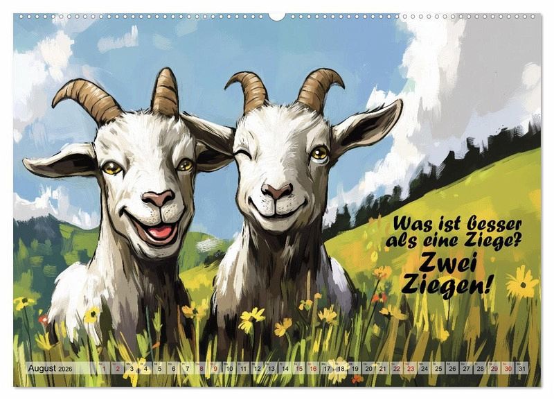 Dieser Kalender zaubert dir jeden Monat ein Lächeln ins Gesicht. Lass dich inspirieren und erlebe die Welt der Ziegen von ihrer lustigen Seite! Jeden Monat ein cooler Spruch begleitet von KI-generierten Bildern. Ob als Geschenk für dich selbst oder für einen Ziegenfan, dieser Kalender bringt garantiert Spaß und gute Laune ins Jahr! Jetzt bestellen und mit einem Lächeln ins neue Jahr starten!