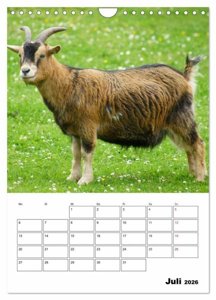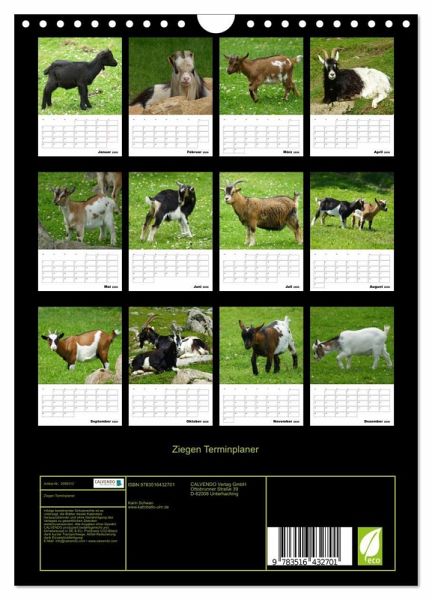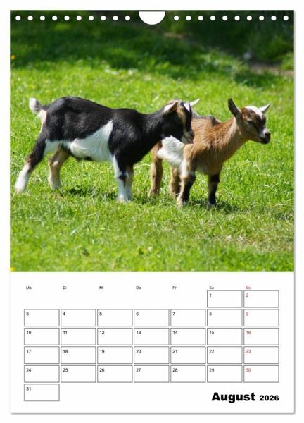 In der Landwirtschaft werden Ziegen hauptsächlich als Milchlieferant und zur Rasenpflege genutzt. Auch als reine Liebhabertiere werden die schlauen und zutraulichen Tiere immer beliebter. Dieser Kalender präsentiert eine bunte Vielfalt dieser liebenswerten Geschöpfe und soll Ihnen dabei helfen, an alle wichtigen Termine zu denken.